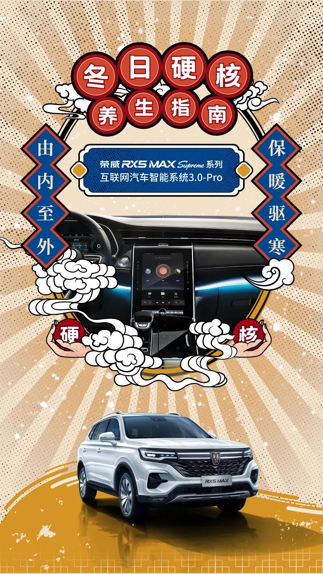 荣威RX5 MAX Supreme系列搭载互联网汽车智能系统3.0-Pro不止能远程打开座椅加热让舒适温暖提前就位更有“咖啡即刻订”功能动动手指就能喝上热腾腾的咖啡身坐暖椅手捧热饮,暖力MAX