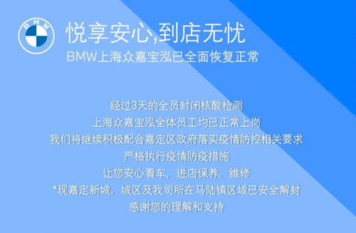 悦享安心,到店无忧|BMW上海众嘉宝泓已全面恢复正常